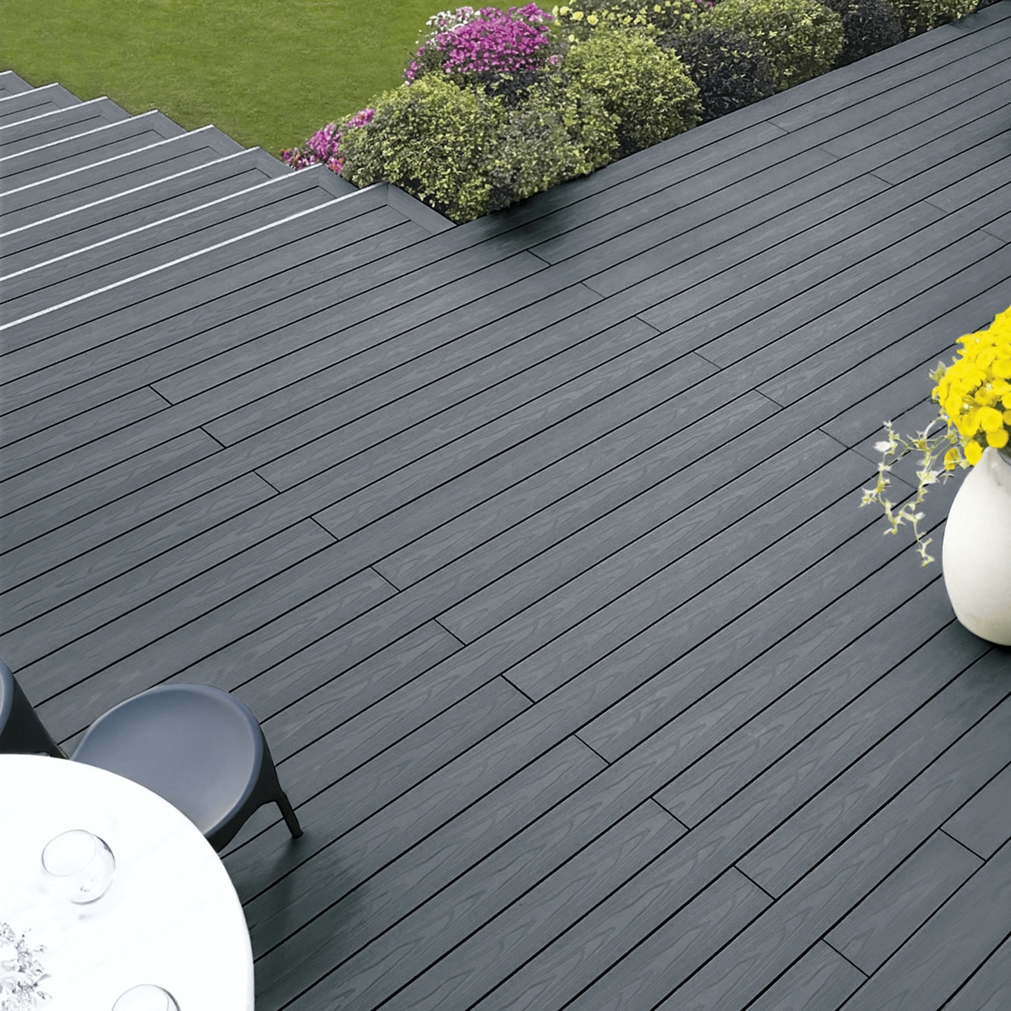 You can even combine a dark colour such as charcoal with lighter shades of composite decking to create striking borders or different zones within your designs.