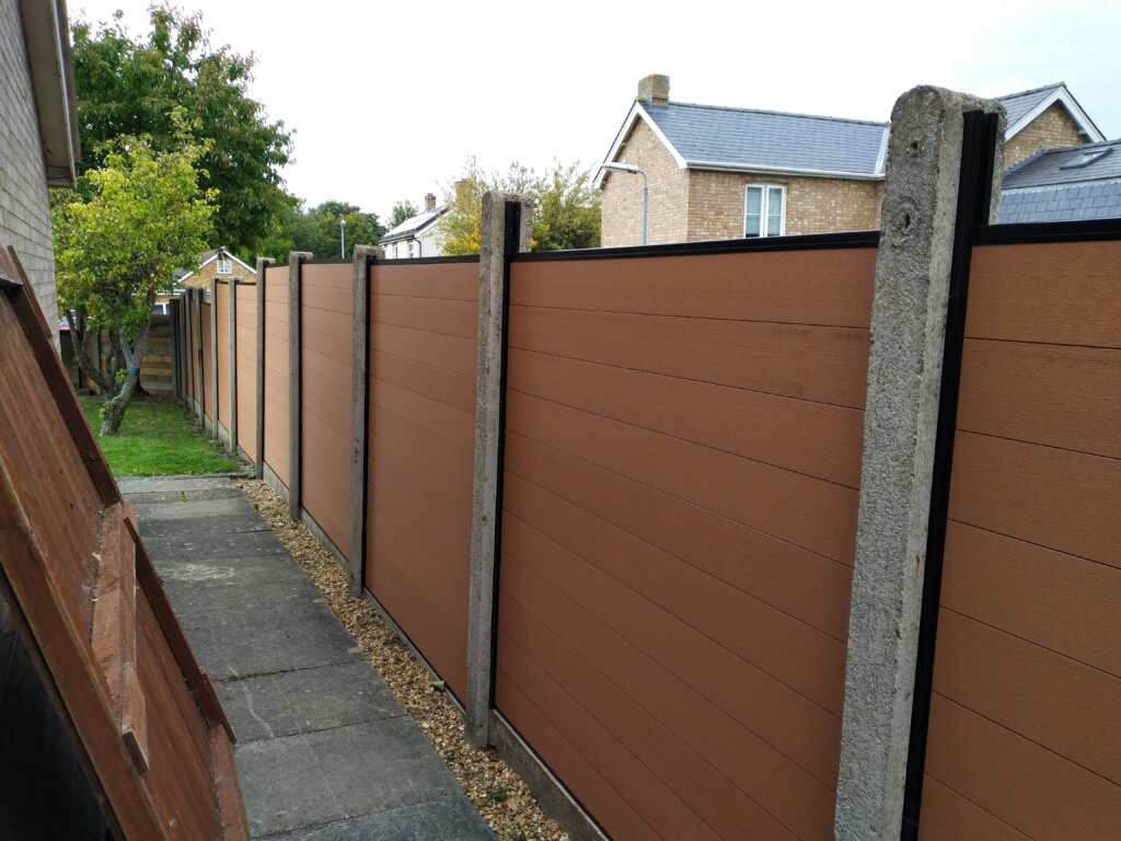 So easy to install. I did have to cut one panels worth of boards but this was no trouble with a decent saw. Also had to cut the channels as these come in a standard 1.8m length. Again, no trouble. Once this was done it was just a matter of slotting the bottom rail, the boards and then the top rail in. I would estimate that if I didn’t have to remove the old panels and paint it would have probably taken me no more than 3 hours to fit 6 panels.