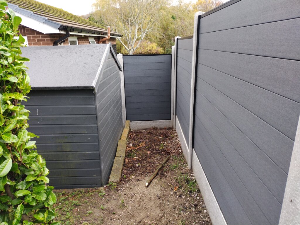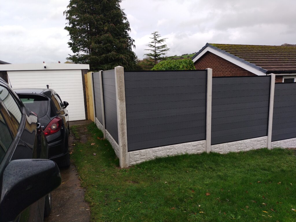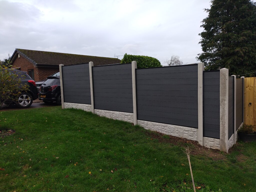 I had traditional fencing fitted, later deciding to go for composite, I am very pleased with the results. Even the neighbours make good comments! A bit expensive, but the quality is good. Make sure you order the correct quantities, as I under ordered two metal posts. The postage is expensive, but if you collect it will save you a packet, I’m too far. Anyway, I’m pleased with the results fitting it myself.